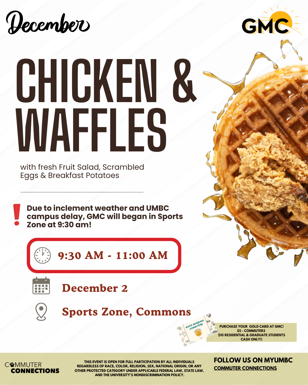 Due to inclement weather and UMBC campus delay, GMC will began in Sports Zone at 9:30 am!