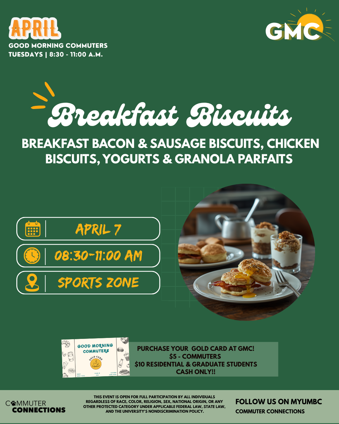 Join us for breakfast with fellow commuters and connect with helpful on-campus resources. There's no better way to kick off your day!