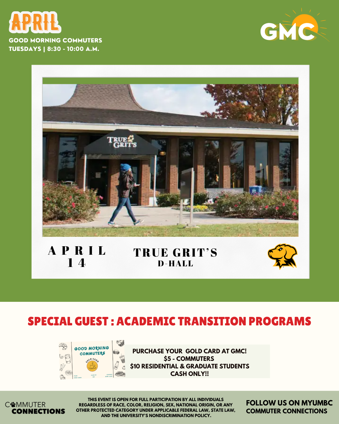Good Morning Commuters (GMC) takes place every Tuesday from 8:30–11:00 AM *except one a month when Good afternoon Commuters (GAC) is held* and is complimentary with your Commuter Gold Card.
