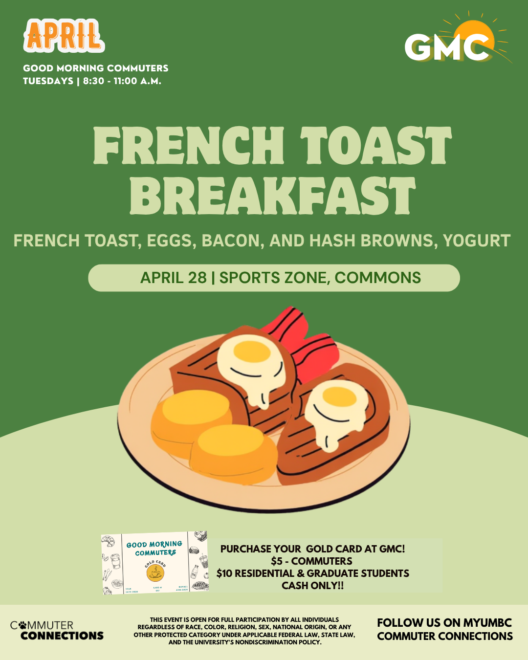 Join us for breakfast with fellow commuters and connect with helpful on-campus resources. There's no better way to kick off your day!